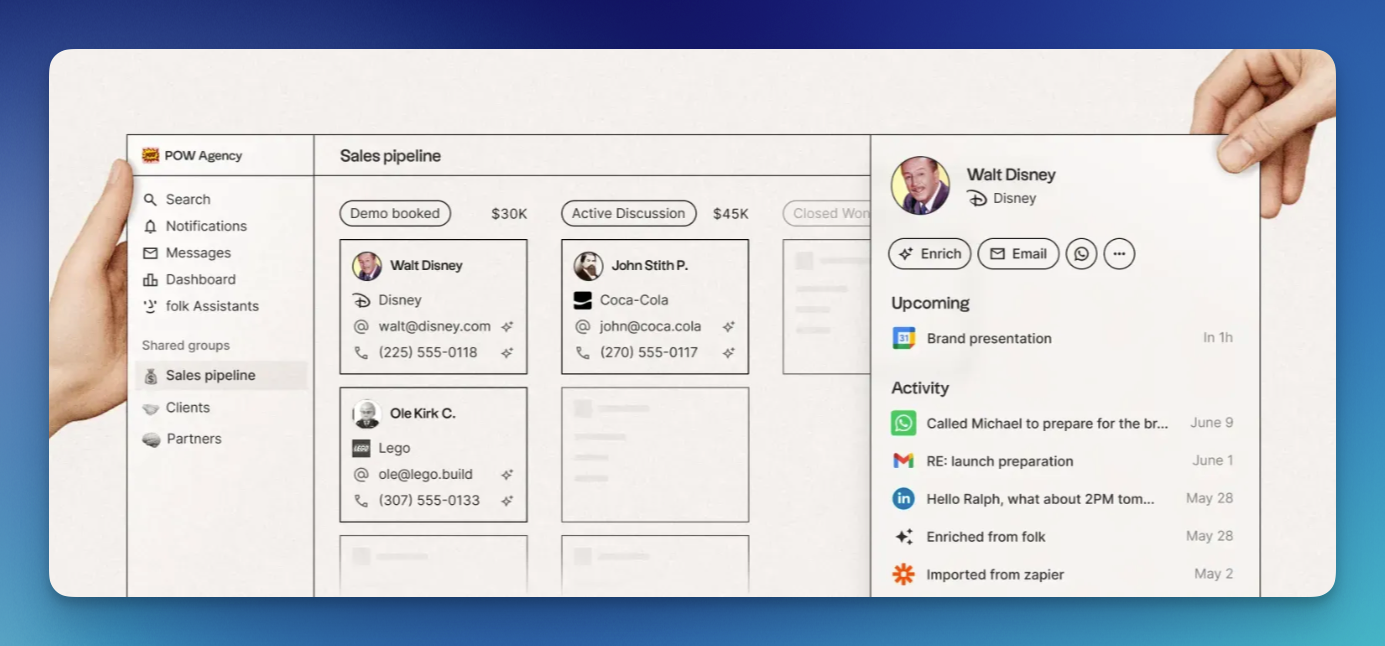 - Partnership teams. Multi-stage partnership conversations don't fit a traditional sales funnel, and folk's flexible pipelines handle that well.