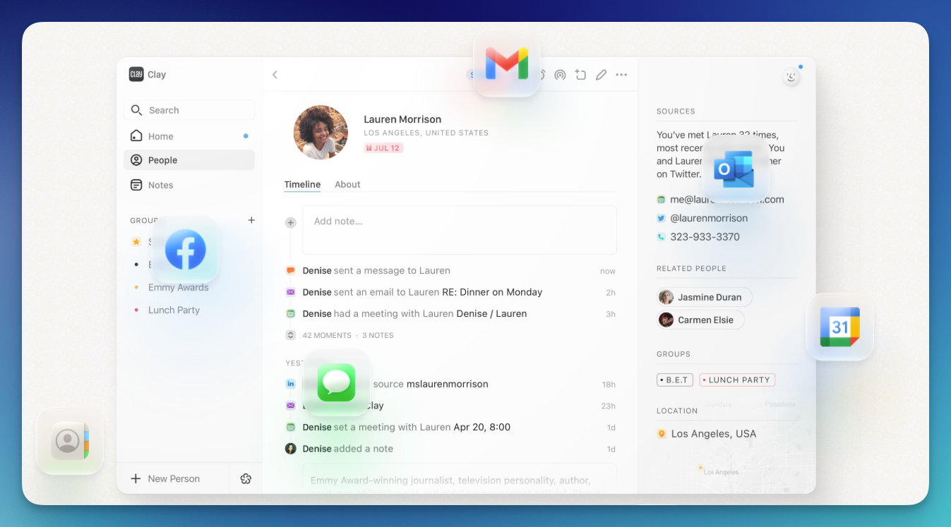Clay is a personal relationship manager (PRM) first launched in 2018. It gained attention with its sleek, dark-themed landing page and invite-only signup. Today, Clay is a full-featured personal CRM that helps you manage and maintain meaningful relationships across multiple platforms with minimal manual effort.