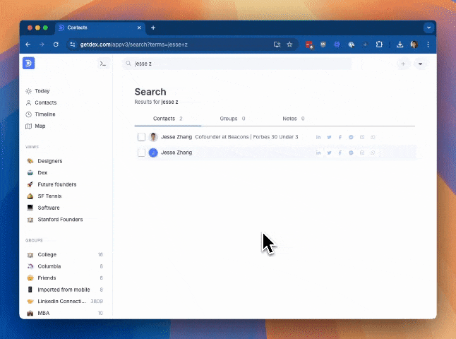 We’ve upgraded our search infrastructure and design to make the experience in Dex much sleeker. Your contacts are now just a keystroke away.