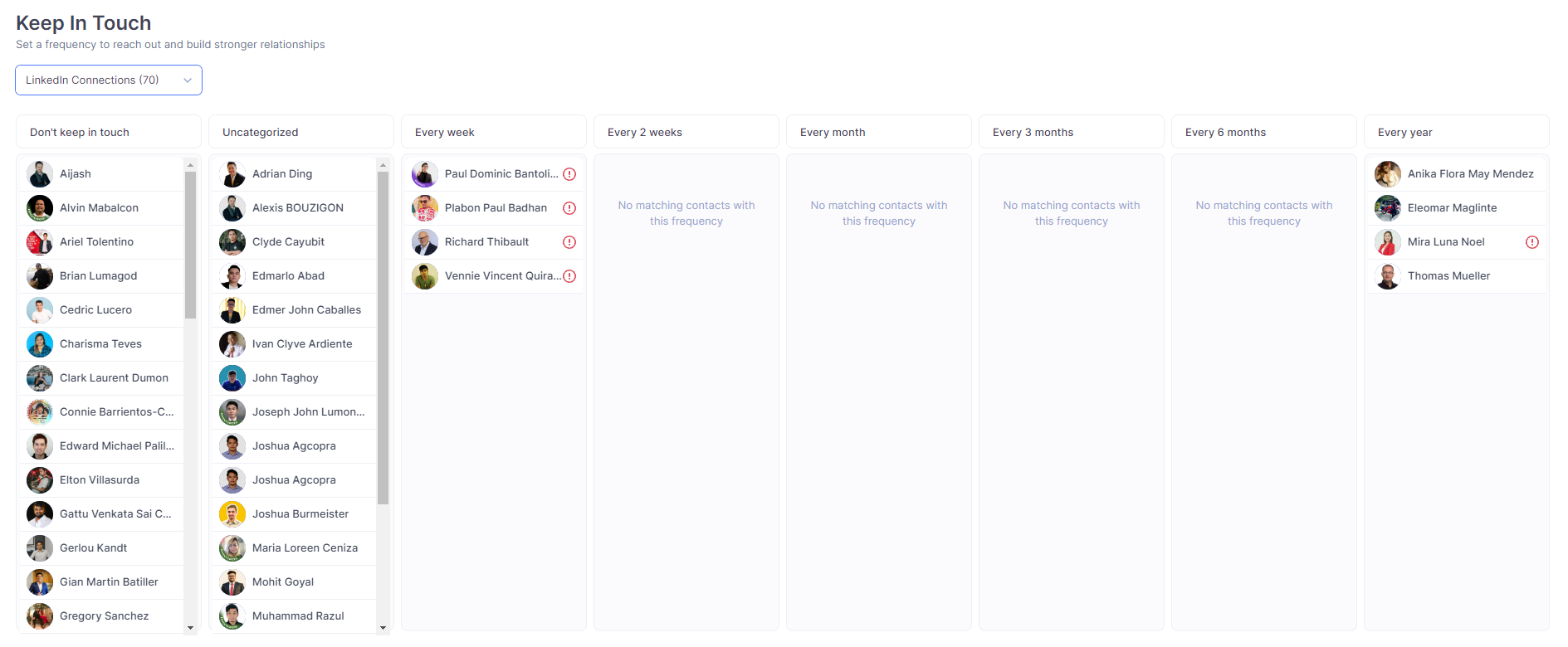 There are several ways to set up a frequency for Keep-in-Touch:Keep-in-Touch Page